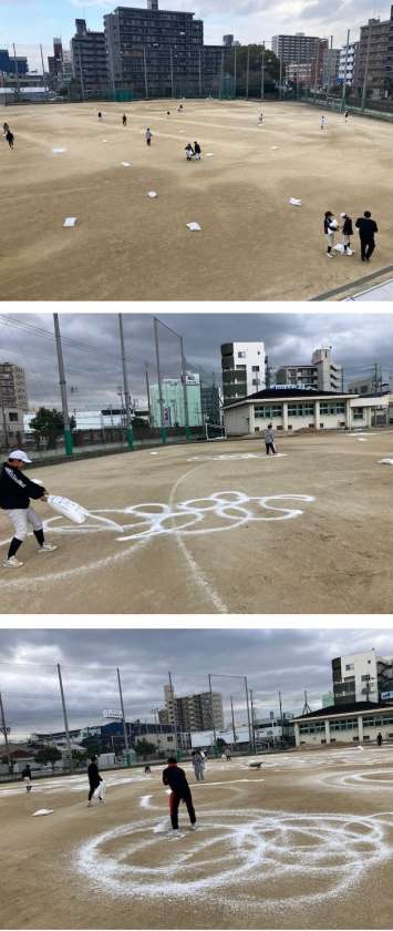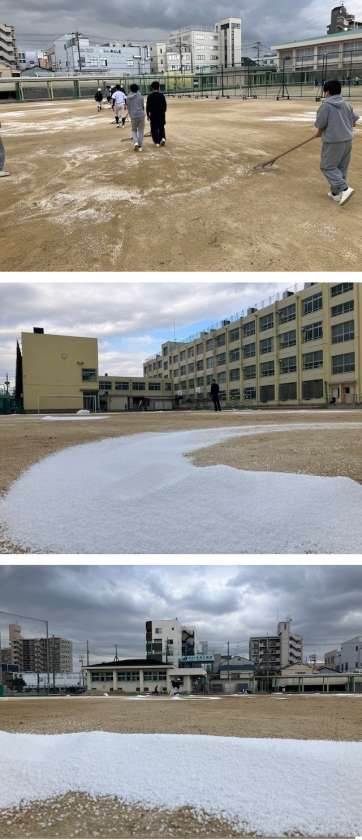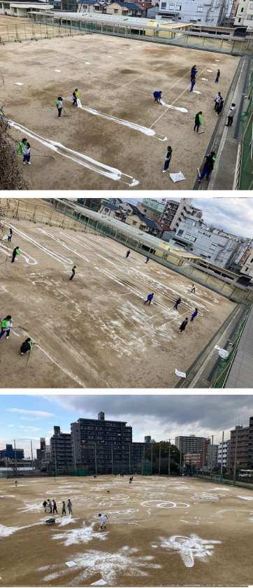今年の年末は。野球部・男子バスケットボール部・ソフトテニス部が、にがり撒きをしてくれました。