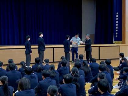最後に、吹奏楽部が大阪市中学校ソロコンテストで銀賞を受賞したため、賞状伝達が行われました。