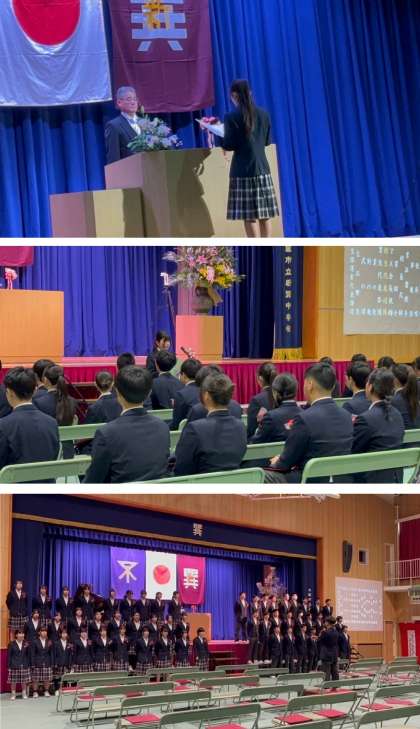 3年間の成長を儀式的行事の中で姿勢で示し、思いを答辞と歌で見事に表現してくれました。