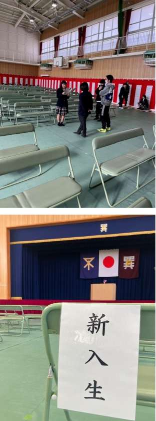 準備の後は、在校生の「歓迎の言葉」、新入生の「誓いの言葉」の練習を行いました。
