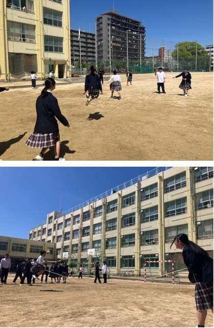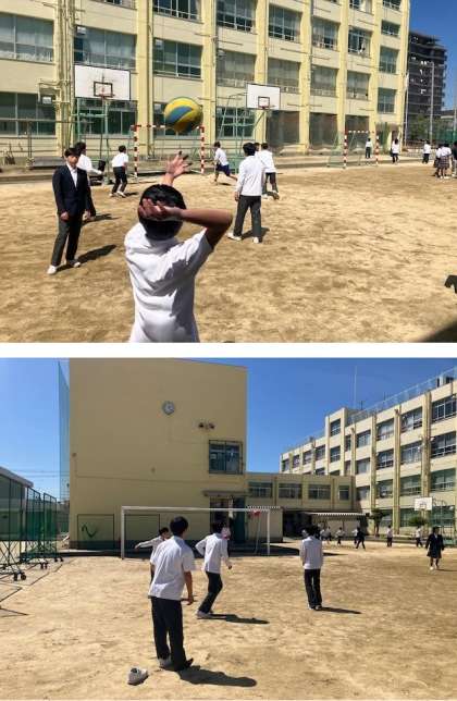 多くの生徒がグランドに出て、昼休みを過ごしていました。