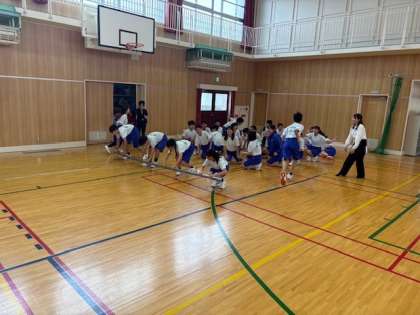 1年生は1時間目に体育大会の学年種目の練習を行いました。