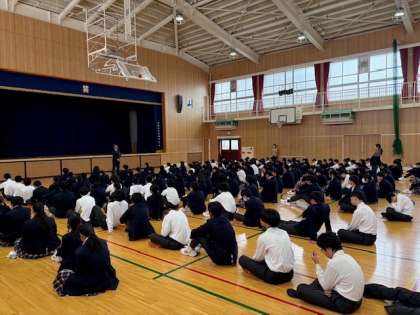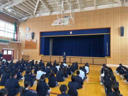 今日の全校集会は、『いじめ(いのち)について考える日』ということで、いじめに関するお話を頂きました。