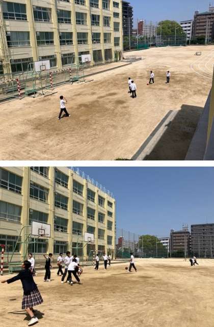 暑い中ですが、給食後生徒たちはグランドに出て走り回っていました。