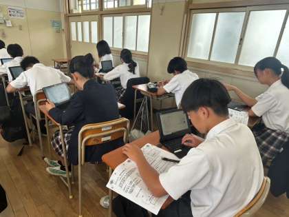 各クラスで、一人一台端末を活用し、それぞれで調べ学習を行いました。