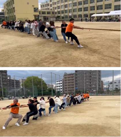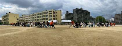 今年は、校長チーム、教頭チームに分かれて綱引きを行いました。