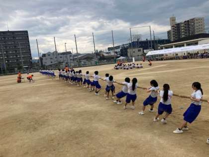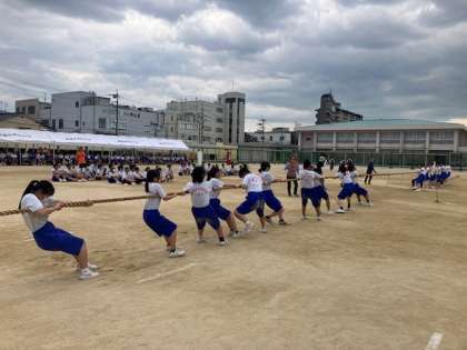 49期生にとっては最後の体育大会。クラスで団結し、思いっきり綱を引っ張りました。