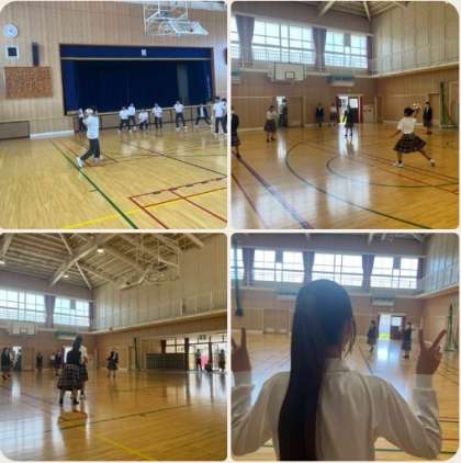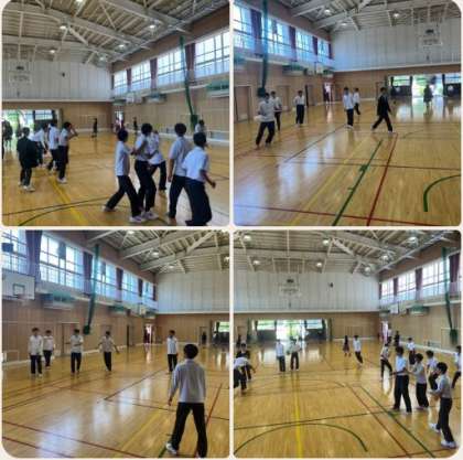 たくさんの生徒が昼休みに体育館に集まり、「いじめより、みんなで体を動かしていい汗かこう!」という雰囲気で活動していました。