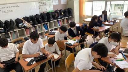 3年生は、1週間後の修学旅行に向けて調べ学習を行っています。