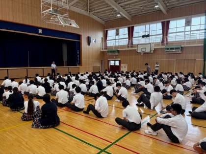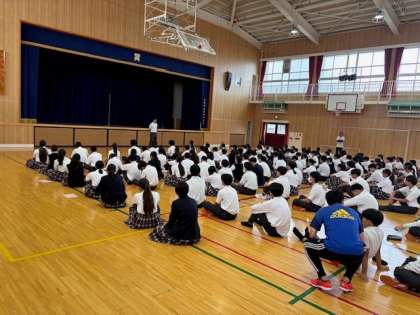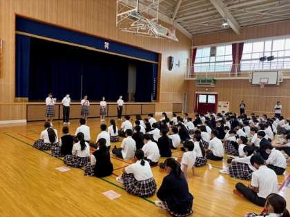 今日の朝は全校集会から始まりました。今日は時間通りに始められ、スムーズに進めていくことが出来ました。