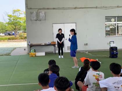 東郷湖に到着した49期生一行は、さっそくお出迎えを受け、説明を聞きました。