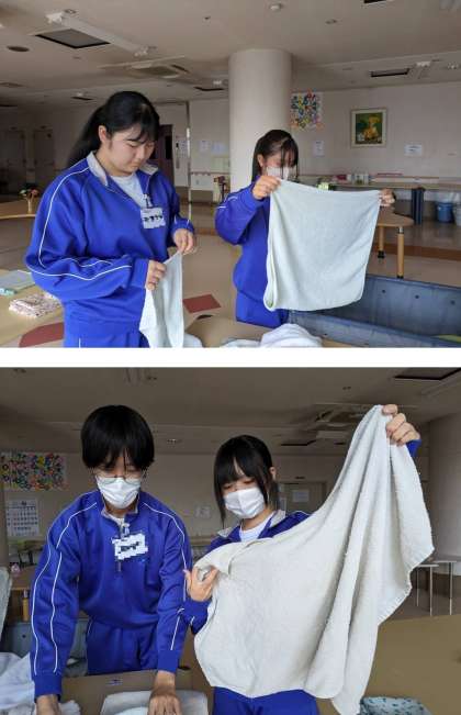 金の鈴では、タオルやカバーのたたみ方を教えて戴きました。