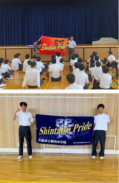 普段頑張っている生徒たちに、PTAより横断幕が送られました。
