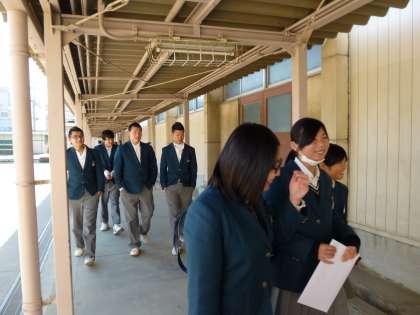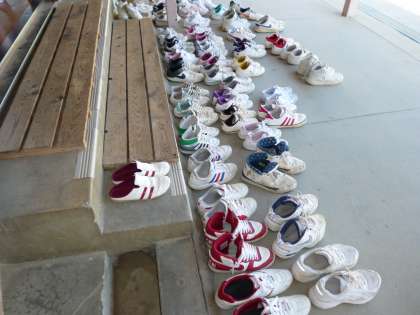 体育館に入室するときにきちんと並べて脱いだくつを履き直して、緊張した受験生たちは出願するために新巽中学校を出発しました。全員が合格することを祈願します。