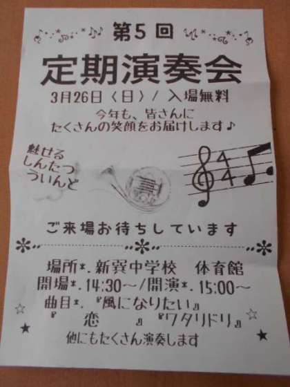 文化発表会を初め、毎回、素敵な演奏を聞かせてくれる吹奏楽部の演奏会が上記の日程であります!!ぜひ、来てください!!!