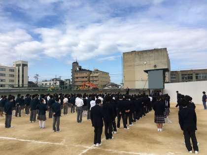 全校集会があり、8時25分に整列完了を目指していましたが、2分遅かったので次回はきちんと集合できるっようにしてほしいと思います。また、認証式も引き続き行いました。前期学級役員の人たちに活躍を期待しています。