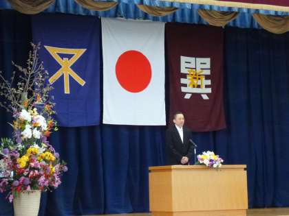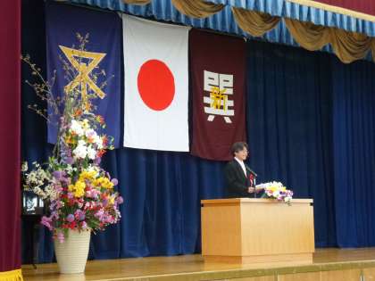 本校 西本 晃校長先生、巽南小学校 三國喜代史校長先生、本校PTA 石川吉成会長様とそれぞれの方から式辞や祝辞の言葉をいただきました。