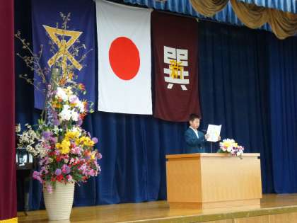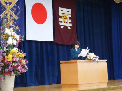 阪井千明教頭先生の祝電披露の後、在校生代表 安田麻衣さんによる在校生歓迎のことば、新入生代表 中司 亮君による新入生誓いのことばがありました。