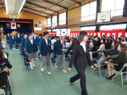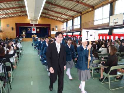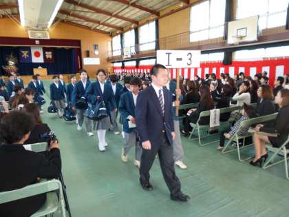と吹奏楽部の演奏をバックに新入生は退場し、各教室での初めての学活へ向かいました。