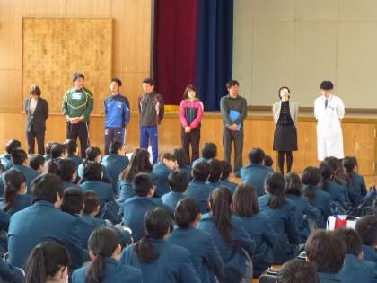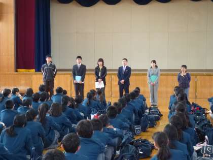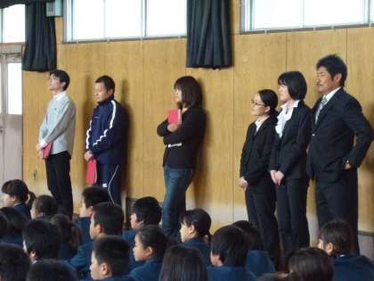 各学年担任・副担任・学年所属の先生方が発表されました。また、学年所属のない教頭・養護教諭・再任用教諭・事務職員・管理作業員の方々も紹介されました。