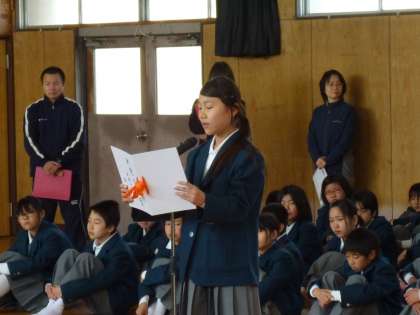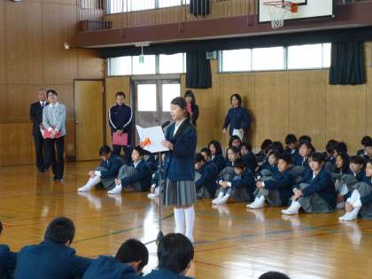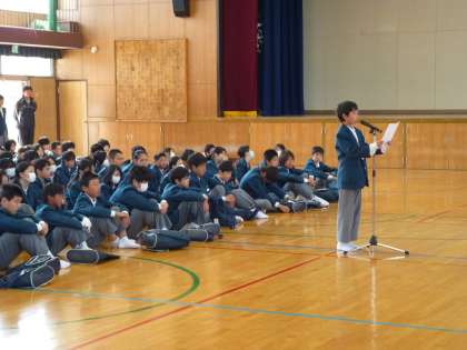 始業式の後、1年生と2・3年生に分かれて向き合い、対面式が行われました。