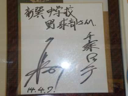 ロッテマリーンズの角中勝也選手より野球部への激励の色紙をいただきました。