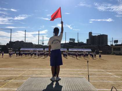 吹奏楽部のファンファーレの後、行進曲の『負けないで』が演奏され、体育委員長の合図とともに行進がスタートしました。