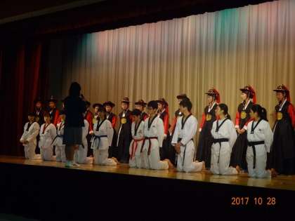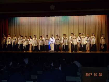 今日は芸術鑑賞会がありました。金剛学園中高等学校から舞踊部とテコンドー部の人たちによる公演と体験を行いました。すごく鑑賞態度もよく、体験にも積極的に参加をしてくれました。