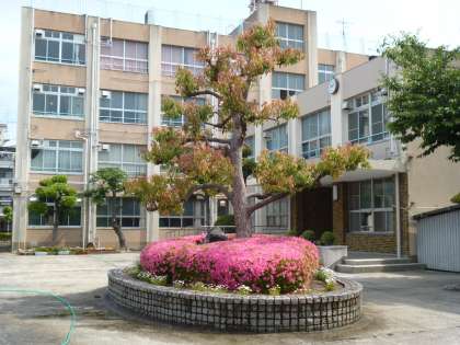 写真は、本校自慢のシンボルである、“楠の木”を西から(正門から)、北から(北校舎側から)、南から(体育館側から)の三方向から見た写真です。現在は新芽がでてきているので、これから大きく茂る直前の状態となっています。