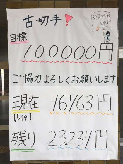 生徒会で回収している古切手ですが、目標金額を設定しました。
