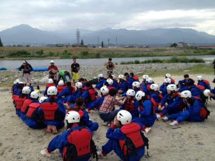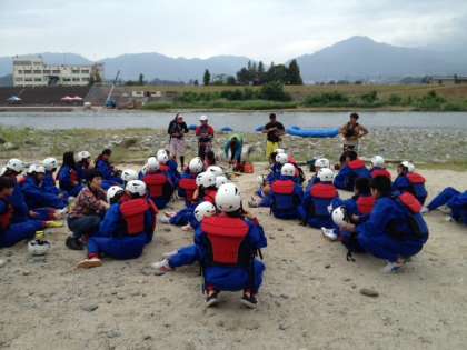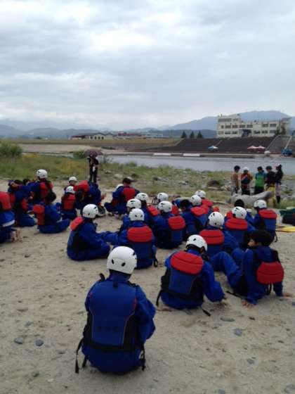 ラフティングを開始するため、インストラクターの方から諸注意を聞いています!