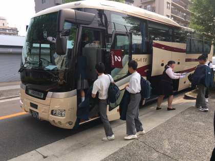 出発の様子です。修学旅行中、出来るだけ多くの様子をあげていこうと思いますので、ご覧ください。