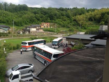 そうこうしているうちにバスが3台とも到着し、新巽中学校修学旅行生が全員、久米川温泉ホテルに入館しました。