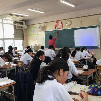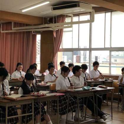 今日は3年生が修学旅行に出発。何となく、ガラーンとしたような、不思議な気持ち?1年生は5時間目が体育。蒸し暑い日なので、6時間目は教室に中が暑くて暑くて。なかなか、汗が引くのに時間がかかります。1組は社会科、2組は音楽。アルト笛でベートーヴェンの第九を吹いてます。