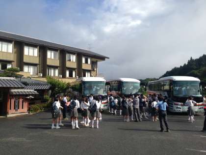 多賀サービスエリアでのトイレ休憩後、15:50に再出発し、学校へは17:30に到着し、帰校式を行って、18:00解散予定となっています。