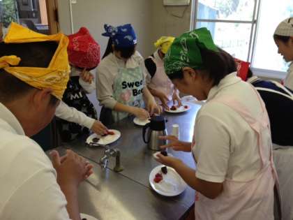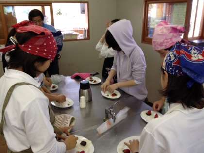 みんなで摘んだいちごでいちご大福を作っています♪