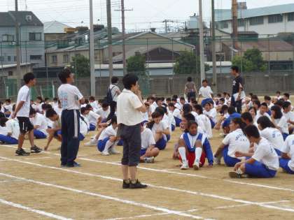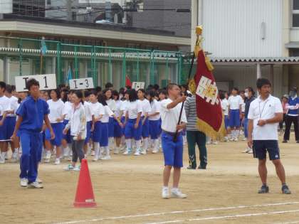 12:15に運動場に開会式の体型で集合し、諸注意の後、入場行進を行いました。