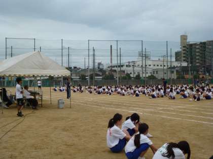 予行終了後、体育大会実行委員長の百田先生より全体の諸注意があり、本日は終了しました。