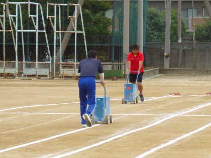 トラックのホワイトラインは、保健体育科の先生方がまっすぐに引いてくれました。