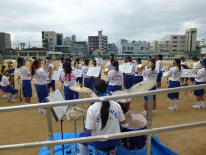 入場行進の演奏をしている吹奏楽部です♪