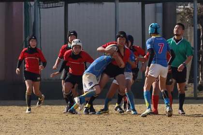 1月19日(土)に、大阪市南地区ラグビー新人戦大会があり、大池中学校との対戦しました。今回もコンバインドチームでなかなか合同練習ができない状態でした。さらに体調不良の生徒が出て、ベストメンバーが組めない試合で大敗してしまいました。みんなで力を合わせてトライを1本とりましたが、ノーサイドとなりました。(画像1)(画像2)