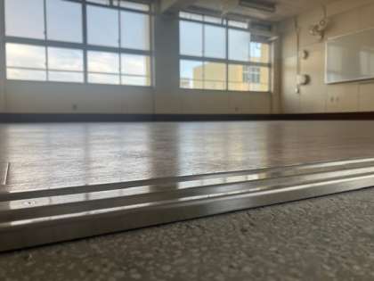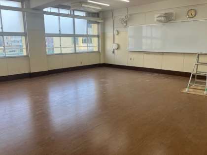 教室の壁とドアも取り付けられ、床面もきれいになりました。