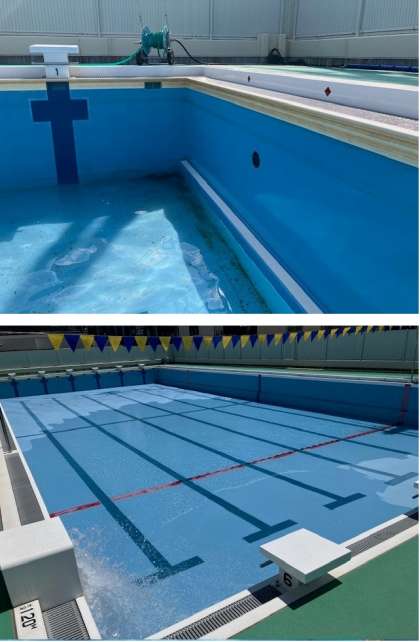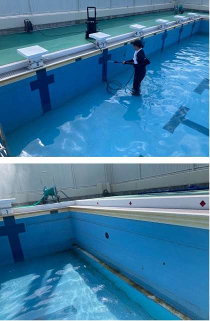 2学期からの水泳の授業に向けて、プール清掃を行いました。まだまだ清掃途中です。今週いっぱいかけて清掃を行います。