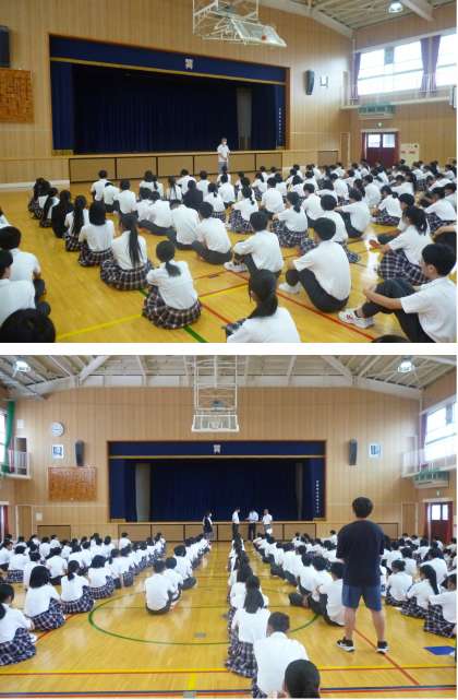 生徒指導主事からは、夏休み中の生活でトラブルなどがあったら担任の先生に相談して欲しいこと、気持ちを切り替えて学校生活を送ることをお話頂きました。