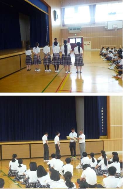 始業式後は、夏休み中の部活動の表彰が行われました。