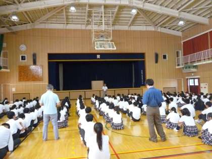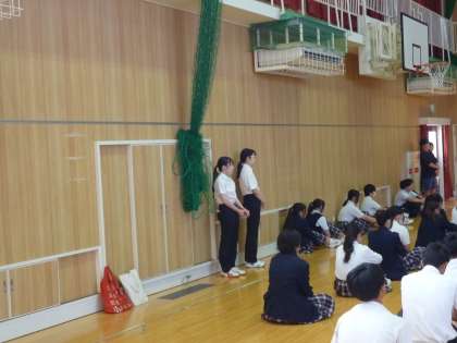 また、今日は3週間、2週間と教育実習生からも職員室での職員向けと全校集会での生徒向けの挨拶を頂きました。