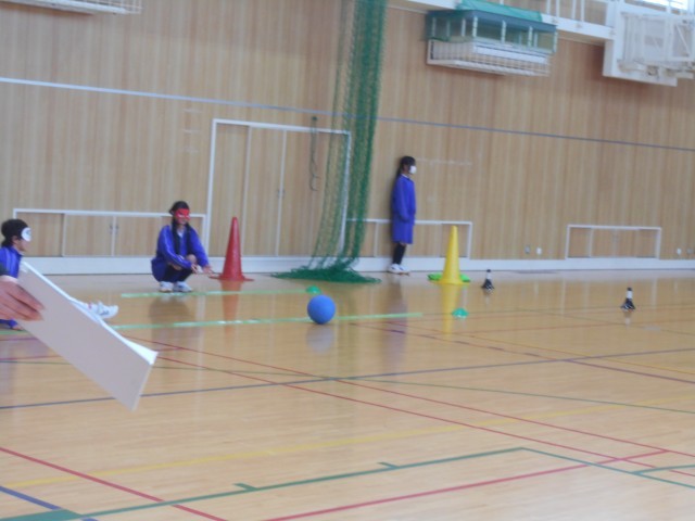 前半はボッチャ、サイレントバスケットボール、ゴールボールの体験をしました。