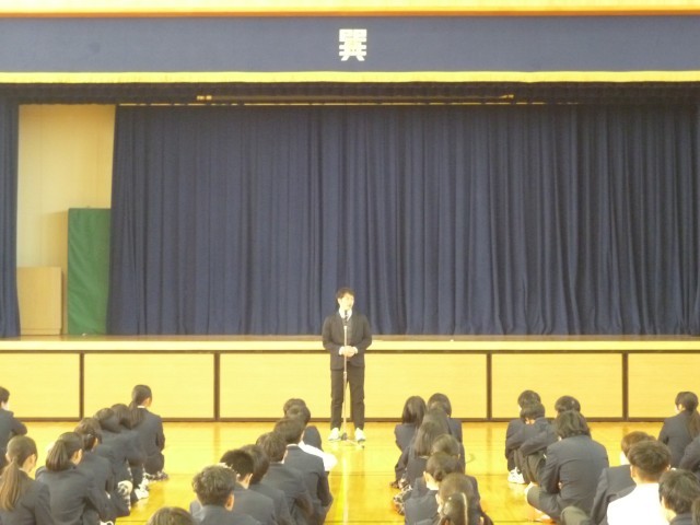 校長先生からは不安との向き合い方についてお話をいただきました。進路決定などで不安な気持ちになってしまうこともあります。不安になるということは、なにかに挑戦しようとしているということです。不安に思うこともありますが、目の前のできることから少しずつ取り組んでいくことで、解消されてくるはずです。日々の生活を大切にして学校生活を送ってください。