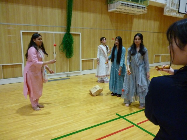 その後体育館、武道場、グランドに分かれ日本の遊びなどを通して交流を深めました。