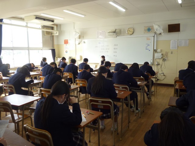 校内を回りましたが、落ち着いた雰囲気でテストに取り組んでいました。